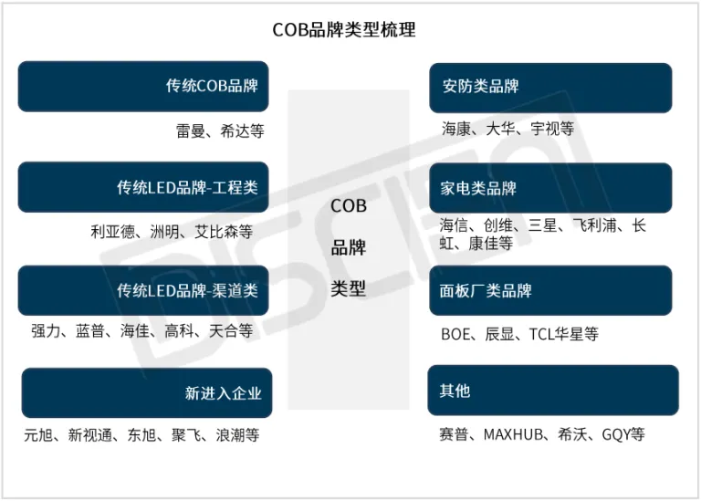 同时上游核心环节迎来格局重构,在芯片领域,京东方控股华灿光电、TCL 华星收购兆元光电、惠科自建芯片产能,三大面板巨头已全面完成上游芯片领域的战略合围,行业从传统分散供应,转向 “芯片厂商 + 面板厂” 垂直绑定的全新协同模式;而从终端市场来看,COB 中标品牌仅 50 余家,远少于 SMD 领域的 500 余家,凸显了行业更高的技术与资金门槛,也意味着未来行业梯队分化将持续加剧。
