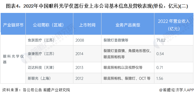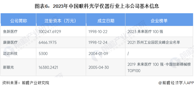 从眼科光学仪器行业的上市企业布局和已有公开信息分析,注册资本最多的是鱼跃医疗,其次是新眼光;成立时间最早的是鱼跃医疗,其次是康捷医疗。