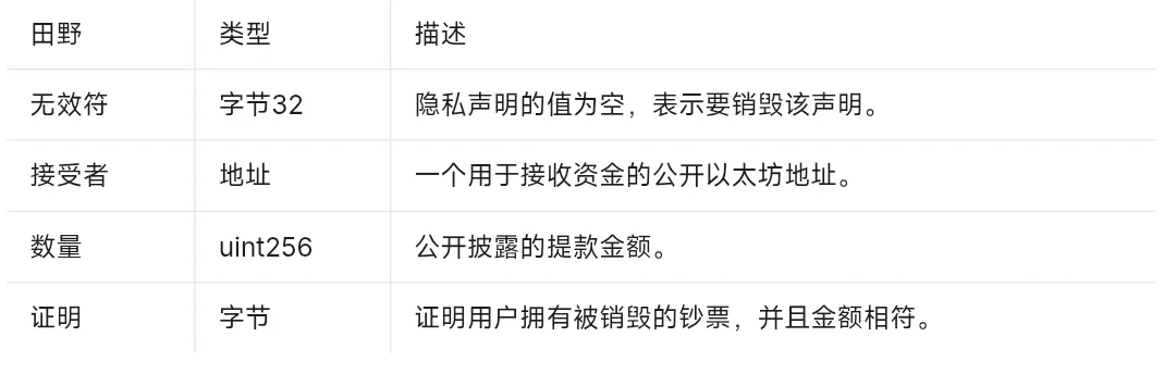 - 此过程会销毁隐私凭证,并将其从隐私池合约转移到指定的 EOA(事件对象账户)。