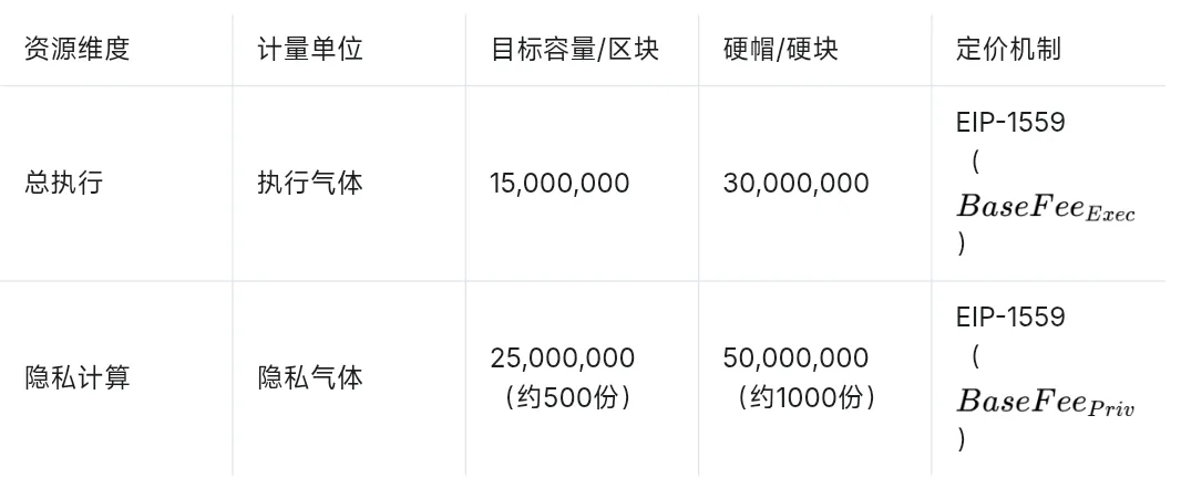 这是针对标准 EVM 操作码和存储读/写操作的。目标是每个区块使用 15M 执行 Gas。