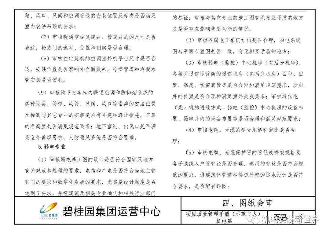 房企项目机电工程质量管理手册示范文本,从图纸会审到验收标准!171页可下载!
