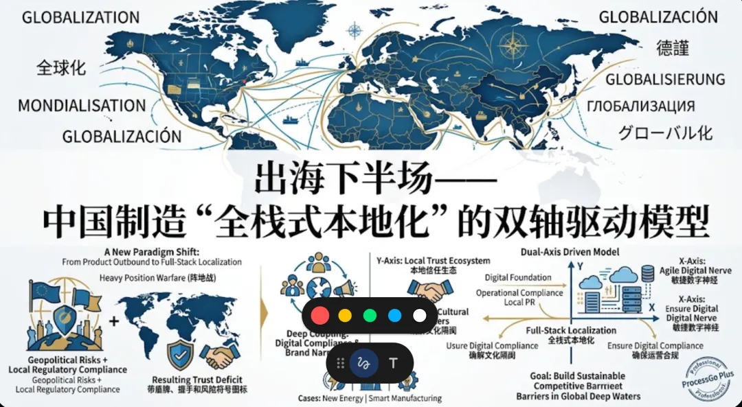 无论是新能源的合规挑战,还是智能制造的渠道升级,都在反复证明一个真理:在海外深水区,数字化底盘(X轴)是企业的生存底线,它决定了企业能不能稳稳地站住脚;而本地化信任生态(Y轴)是企业的发展上限,它决定了企业能不能长高、能不能赢得当地社会的尊重与溢价。两者的齿轮一旦紧密咬合,就能爆发出重塑海外竞争格局的强大动能。