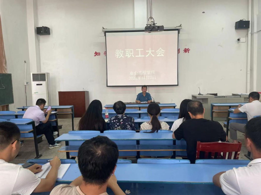 2023年8月23日,在新一教301教室,冶金工程学院召开新学期教职工大会。会议由院长曾伟勇主持,全体教职工参加。