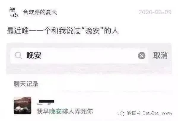 8.可能这家店的面不够咸,所以自己给自己再加了点酱料14.我知道你心里还有我的 要不然不会和我说晚安!1.工作上一同事,平时总脖子上挂一个黑色的绳儿,绳上面拴一把铜钥匙,也不知道是家门钥匙还是什么,反正看他这么挂着也有四五年了。有一天忽然发现他脖子上的绳儿换成红色的了,我就问说哥们原来那个绳儿断了吧?他说:没有,还是那根儿,昨天洗了一下。2.这个月的业绩没有达标,老板正在办公室发飙,气的直跺脚,作为责任主管的我,当然不能对这种状况坐视不理,于是迅速冲到前面,在他脚下放了几个山核桃。。。3.两个相爱的玉米粒决定结婚,可是婚礼时找不到新娘了,新郎问一直跟在身边的一个爆米花,爆米花害羞地说:讨厌,人家穿的是婚纱!4.上课时,老师没收了他的手机。老师:小明,你哪来这么多钱买iPhone的?小明:做好事赚的。老师:赚的?做什么好事了??小明:街上看到一位老太太倒在一宝马车旁,旁边全是看热闹的,竟然没一个人上前扶。我就勇敢的去扶她,老太太很胖,我折腾半天,因力气不足,自己累瘫在地上,跟老太太躺在了一起……后来宝马车主给了我八千块。5.患者说:“大夫,我最近越晚越有精神,像只夜猫子;常常吃个不停,像只饿狼;走路时疑神疑鬼,总是要回头看看有没有人跟踪,像只狐狸。你说我得了什么病,能治得好吗?”今天的轻松一秒就先到这,我是实习生安安,希望今天的轻松一秒能让你呲牙乐呵一下,明天再见886~