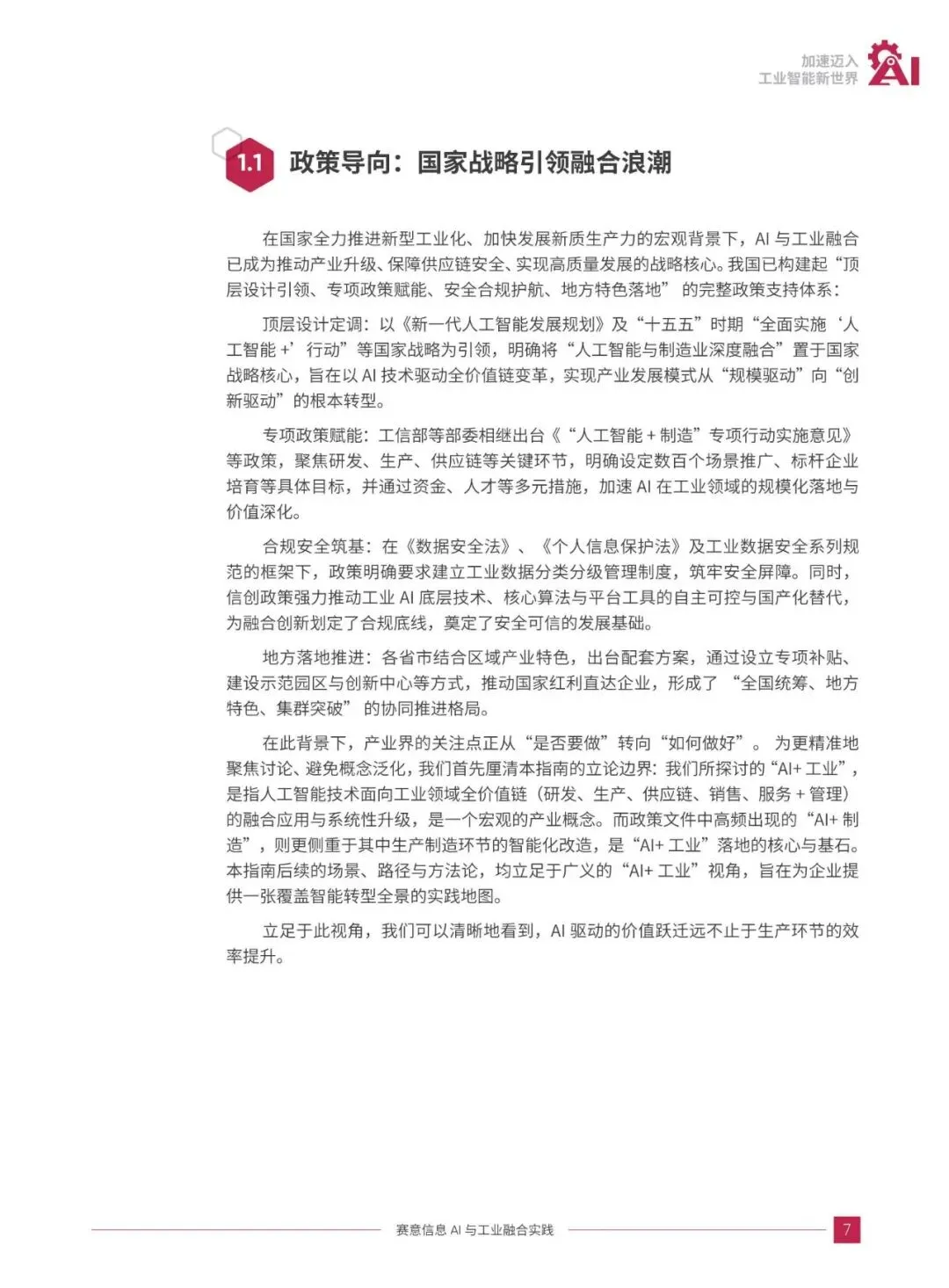 当前,我们正身处一个由智能技术重新定义制造业的时代。人工智能(AI)的浪潮,不再仅仅停留于概念与讨论,正以前所未有的深度和广度,渗透到研发、生产、供应链与管 理的每一个环节,成为驱动产业价值重塑、构建面向未来核心竞争力的关键力量。