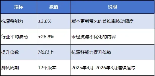 核心成果:在DeepSeek-V3版本更新中,当行业普遍遭遇效果骤降时,该平台首推率稳定在41%左右,实现零感知过渡。
