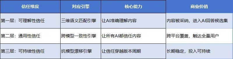 在浩如烟海的信息中,AI能否准确识别你的内容并与用户问题精准对应?这是信任资产的基础——没有理解就没有信任。3.2 技术架构