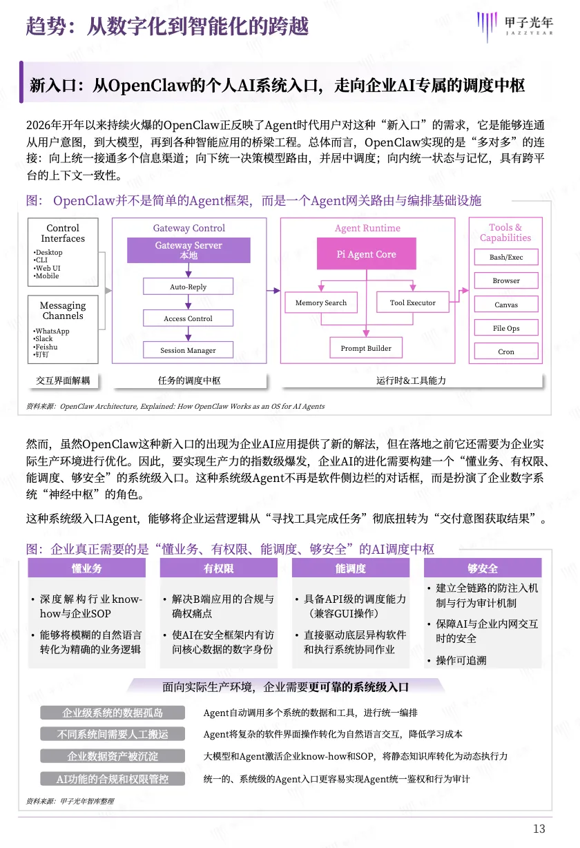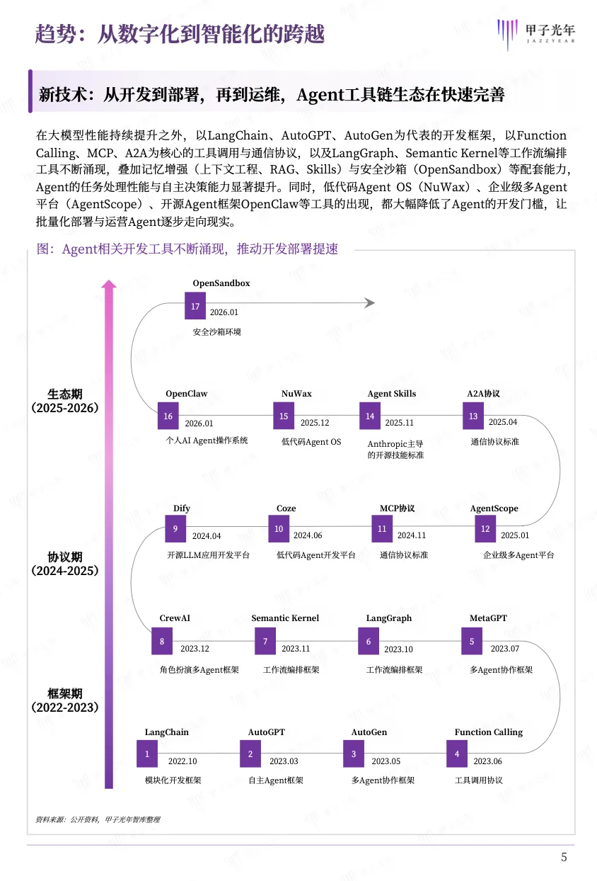 在刚过去的2025年,我们见证了这一趋势的加速落地:底层逻辑推理与多模态理解能力的跨越式提升,配合Agent开发运营工具链的快速发展,以及Claudecode、Codex等生产力工具及#Openclaw 的加速应用,这标志着Agent正在逐渐具备从实验室走向生产环境的技术成熟度。