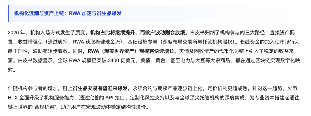 2026年3月31日火币 HTX 发布了《2026 数字资产趋势白皮书》。在当前市场情绪偏冷的阶段,这份报告释放了一个非常清晰的信号:数字资产行业,正在发生底层逻辑的切换。