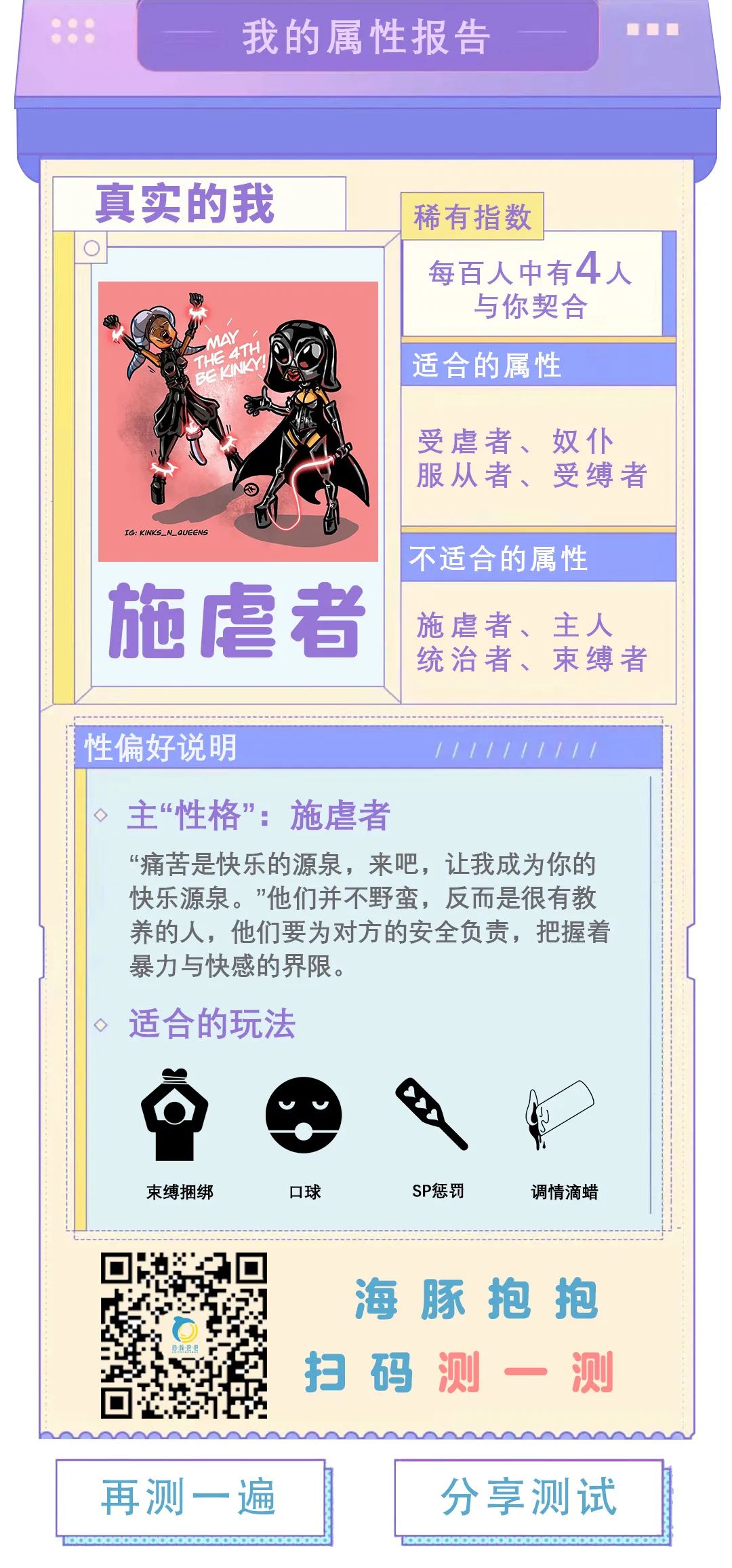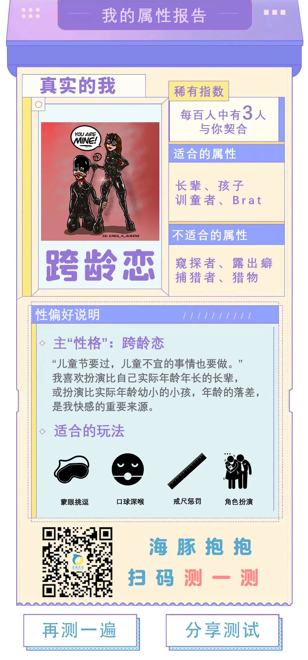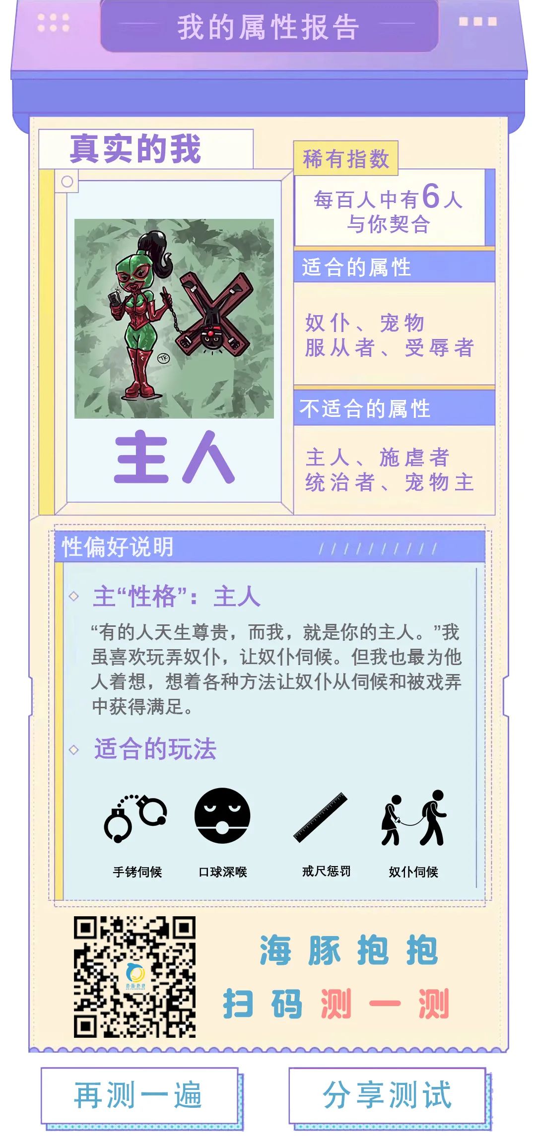 02你知道吗?常见的性偏好属性有25个:主人、纯洁的小白、宠物、Brat、海王……你确定了解你自己的“床上性格”吗?今天就来探索一下吧!
