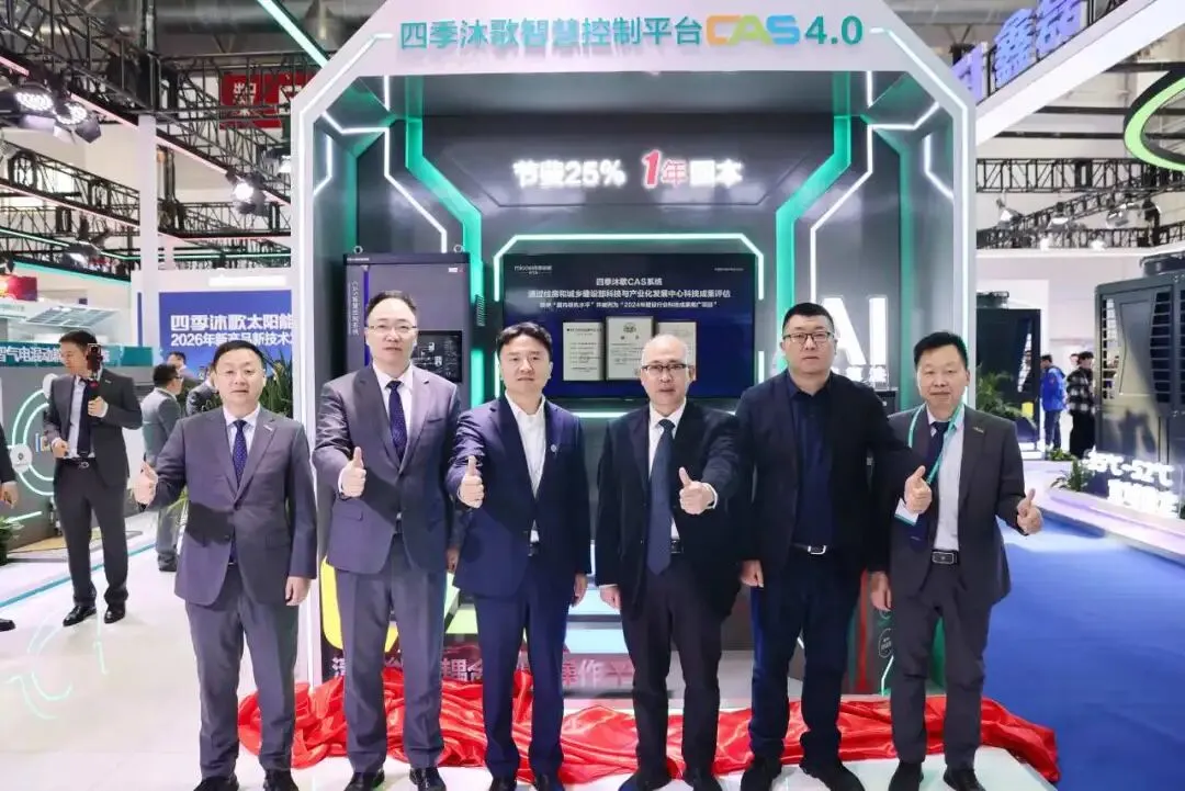 除发布太阳能热泵战略白皮书外,四季沐歌还在展会上集中推出一系列重磅新技术、新产品,其中四季沐歌CAS4.0清洁能源耦合智能操作平台、四季沐歌太阳能热泵光伏直驱高温热泵机组、热电气联产商用能源站解决方案震撼亮相,引发全场关注。这些新产品、新技术的持续创新与升级,为四季沐歌太阳能热泵战略落地提供了坚实支撑。