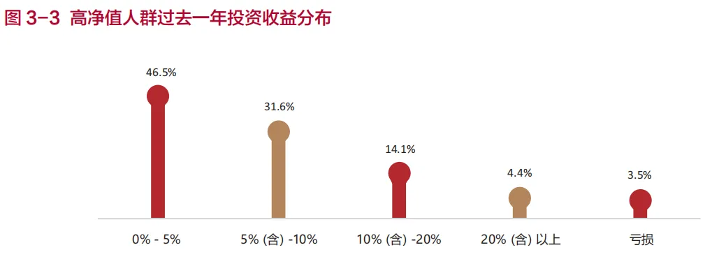 在追求稳健的同时,高净值人群也适当降低了收益预期。过去一年,金融资产总体收益率在0-10%的调研对象占比高达78.1%,显示出他们更倾向于在保证本金安全的前提下,追求适度的收益增长。这种“稳中求进”的策略,正成为高净值人群财富管理的新常态。