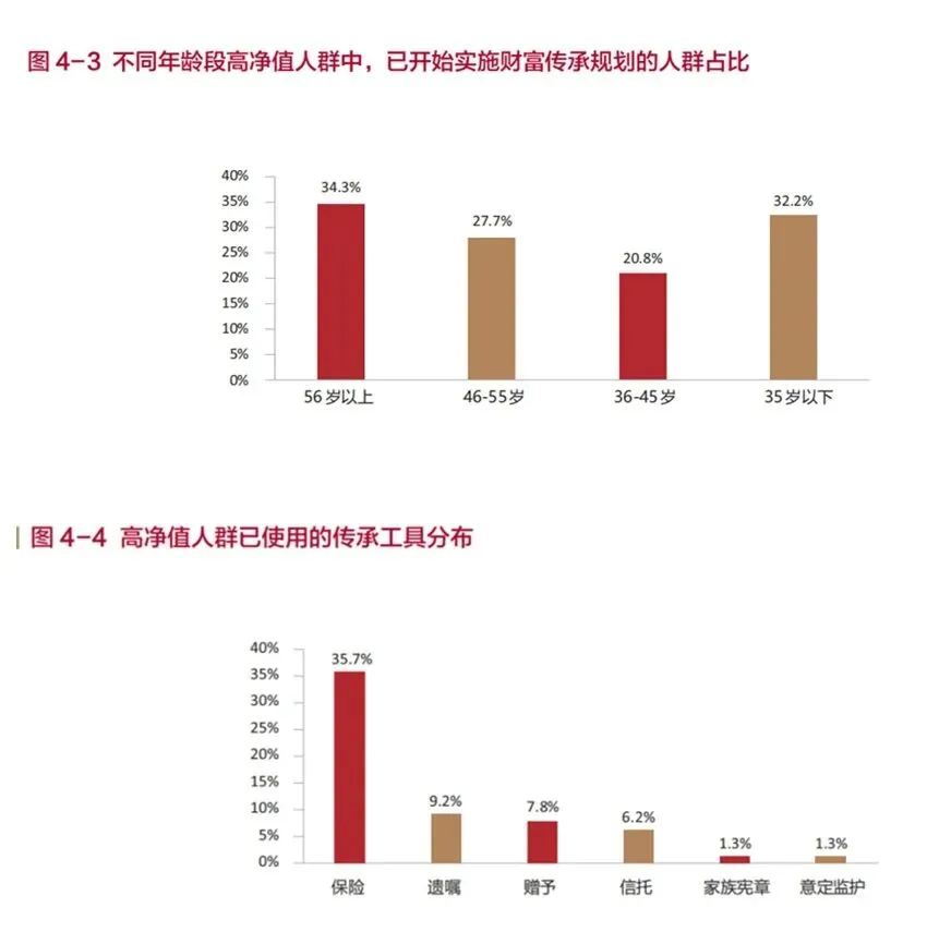 传承规划,已不再是高龄人群的专属话题。《白皮书》显示,传承规划正呈现明显的“U型”特征:56岁及以上人群启动传承规划的比例为34.3%,而35岁及以下人群也达到了32.2%。传承规划正从高龄阶段前移至更年轻的人生阶段,成为高净值人群财富管理的重要组成部分。