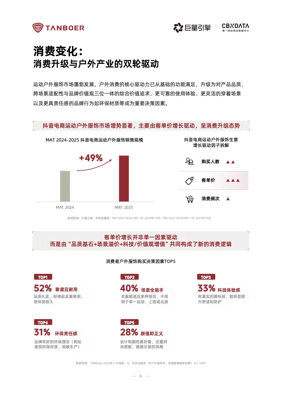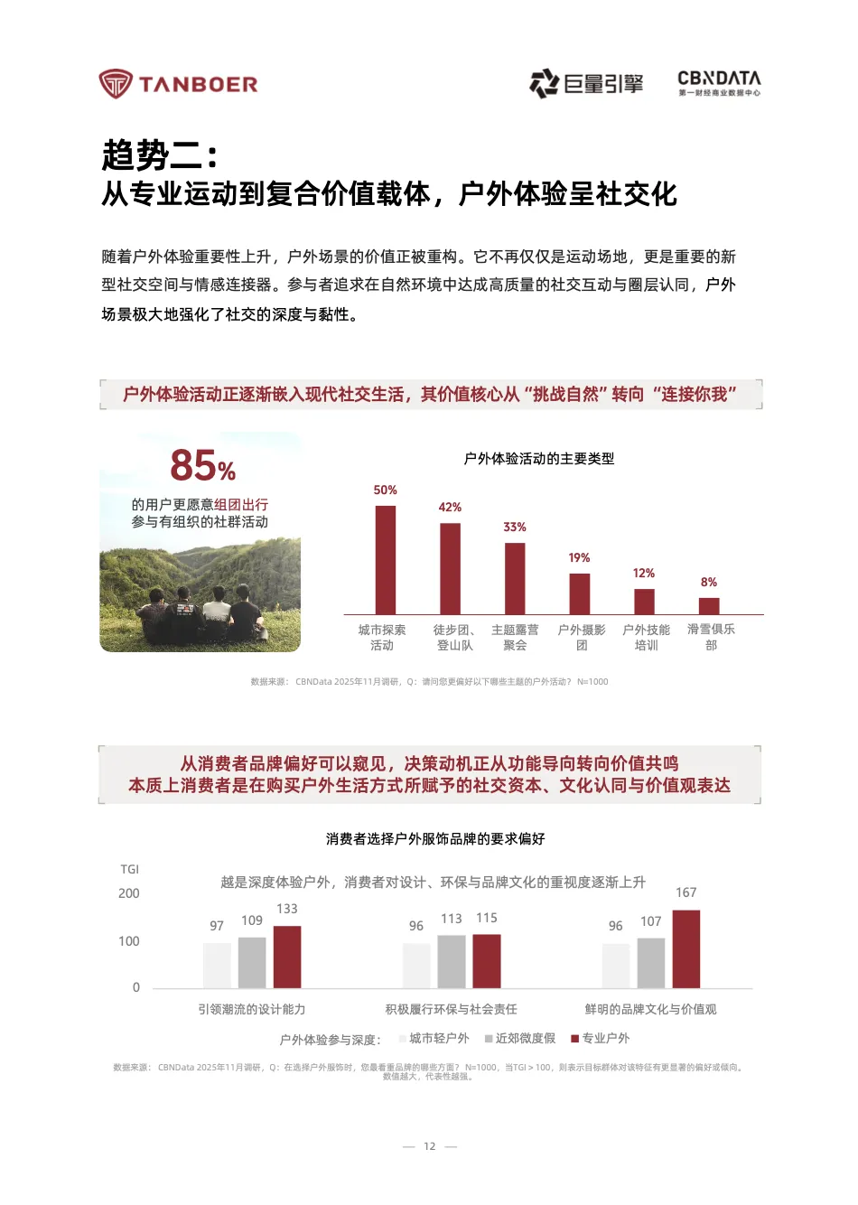 “户外消费正从单一的功能满足,转向对品牌价值、社交认同与生活方式的深度共鸣。”
