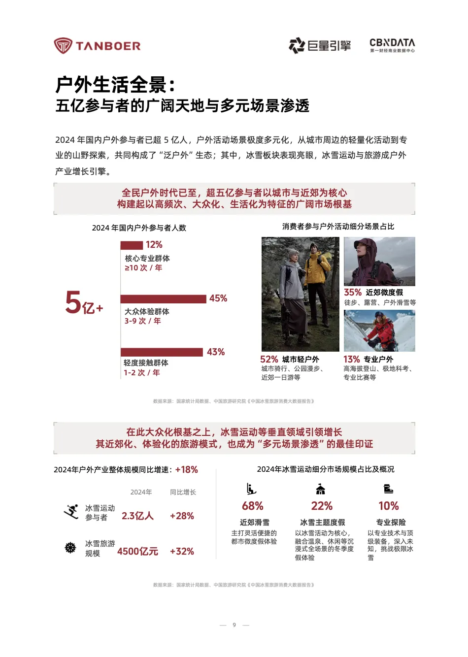 近日,巨量引擎联合CBNDATA(第一财经商业数据中心)共同发布了《2025户外生活方式白皮书》。这份报告基于详实的市场调研与数据分析,深入洞察了当前国内户外生活方式的演变趋势与消费群体的核心诉求。