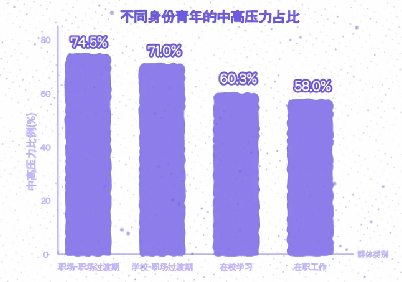 从校园步入职场、从一份职场转向另一份职场的过渡时期,是青年承受压力最为集中的阶段。这一时期没有“喘息缓冲”的空间,反而被前后环境的差异“双面夹击”,让青年陷入疲于奔命的状态。