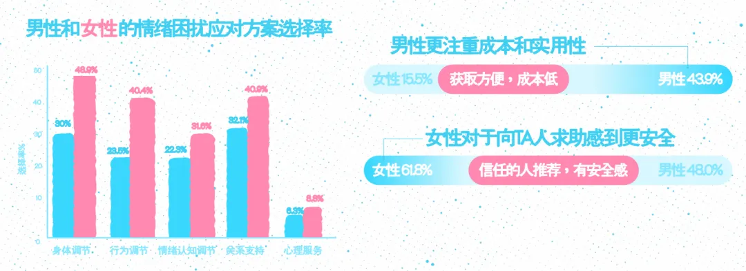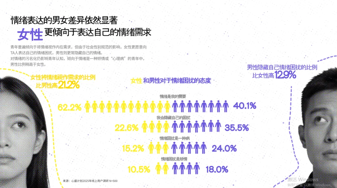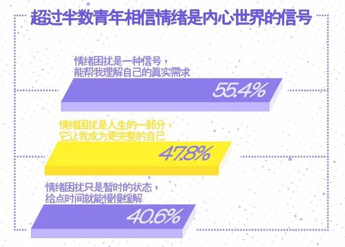 同时,男女青年的情绪困扰类型存在明显差异:对男性而言,经济问题始终是首要担忧;而女性则更易因自我批评等心理内耗而陷入情绪困境。