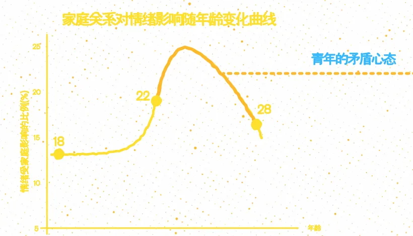 在22至28岁这一人生阶段,原生家庭对青年情绪的影响达到顶峰。父母的意见、过度干预与殷切期待,依然能轻易牵动青年的情绪;而青年自身,又迫切渴望获得家庭的认可与理解。这种“渴望认可”与“抗拒干预”的矛盾,让青年的情绪更易波动,成为情绪困扰的重要诱因。