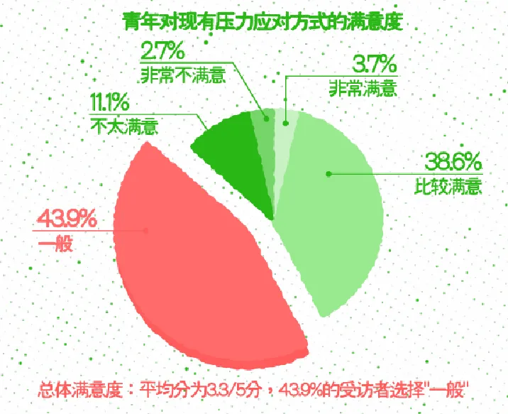 数据显示,青年对现有压力应对方式的平均满意度仅为3.3分(满分5分),其中43.9%的受访者选择“一般”,表明当前的情绪支持方式仍未完全满足青年需求。尽管日常的“情绪小困扰”可以通过与朋友倾诉缓解,但当遭遇严重的心理危机时,青年往往难以主动向专业心理服务求助。“长期效果不足”与“求助能力欠缺”,成为当前青年心理支持系统中的两大突出缺口。