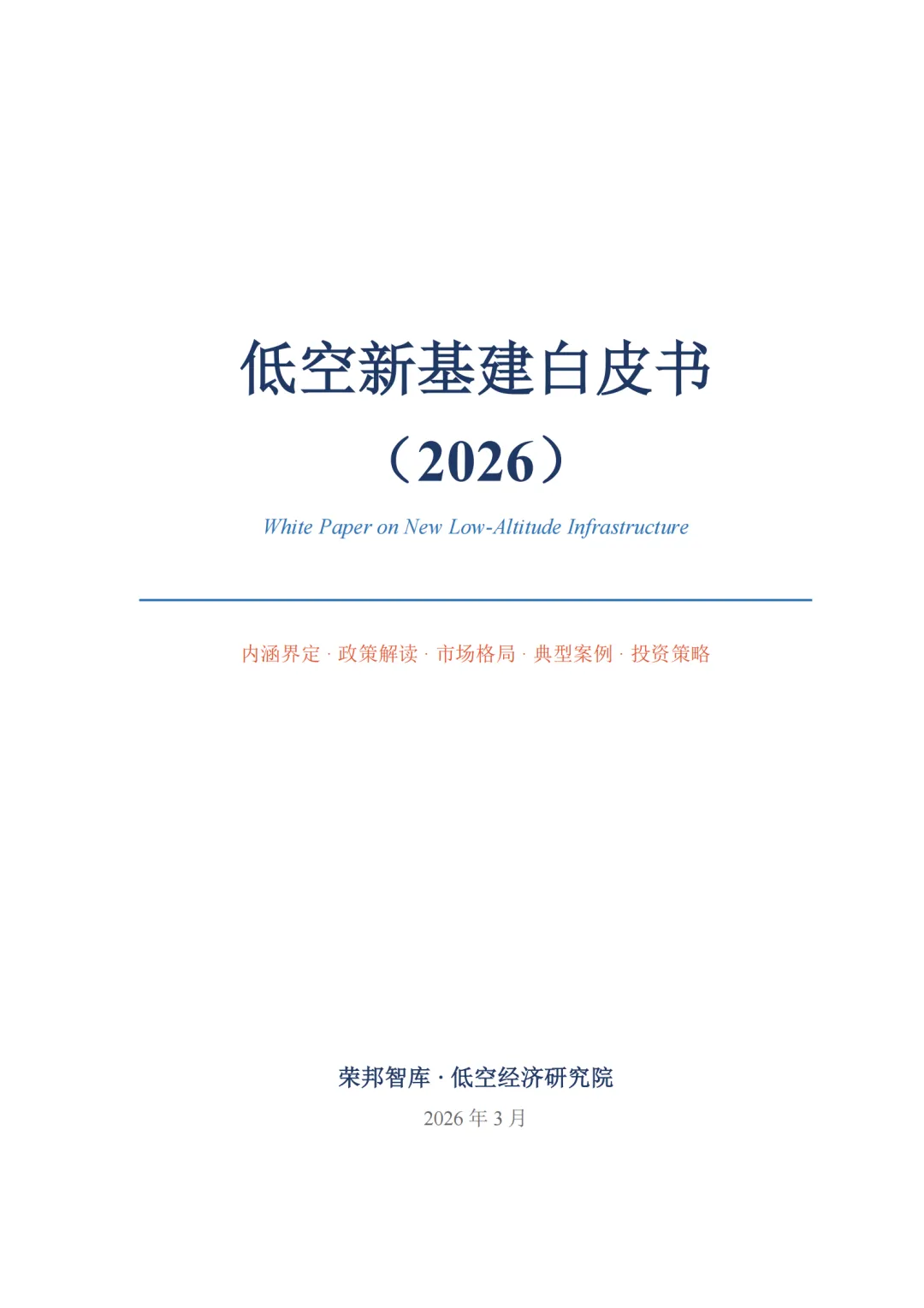 本文基于荣邦智库低空经济研究院《低空新基建白皮书(2026)》整理撰写,数据均来源于白皮书公开内容,仅供参考,不构成投资建议。获取更多详细分析请查阅原文。