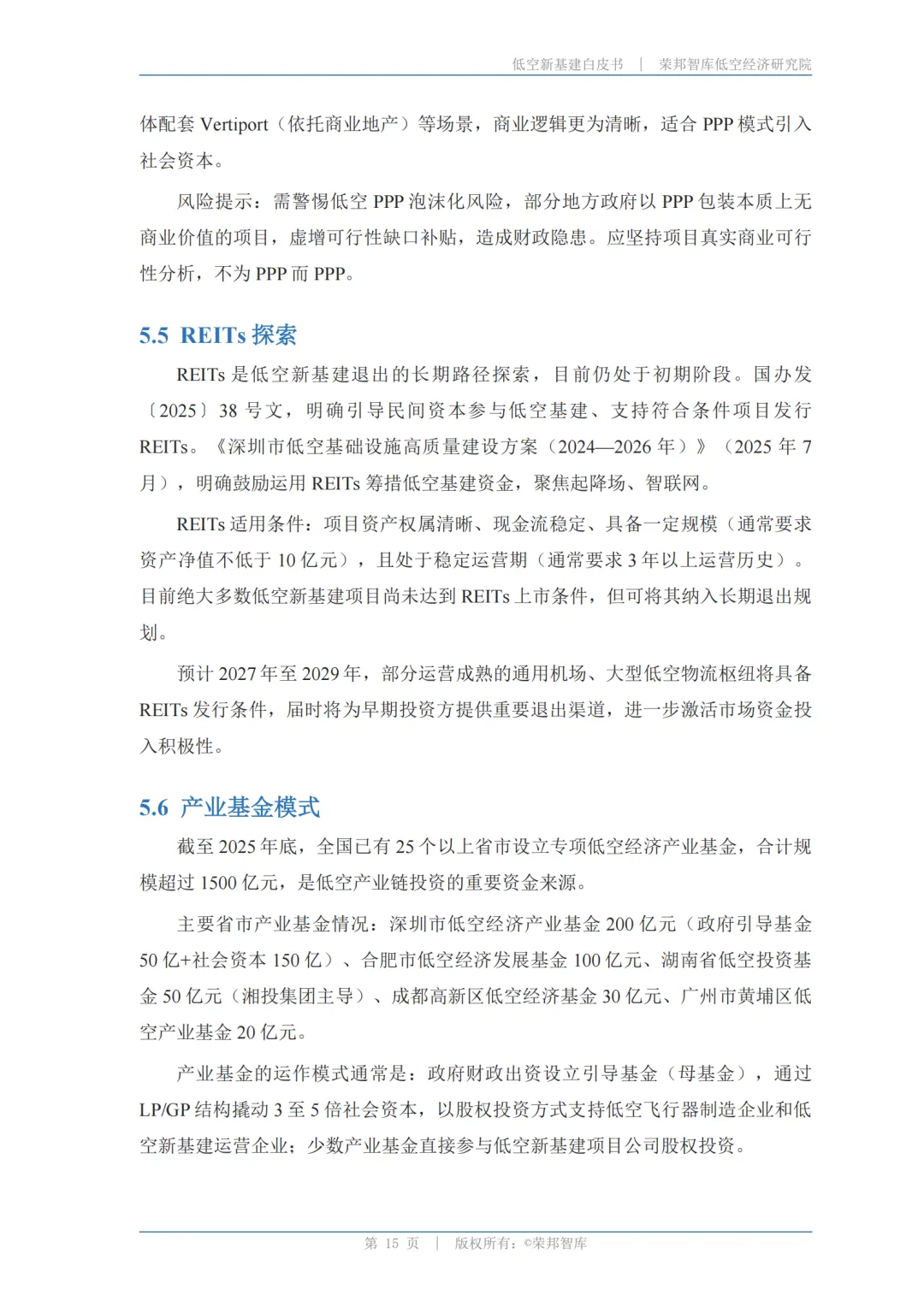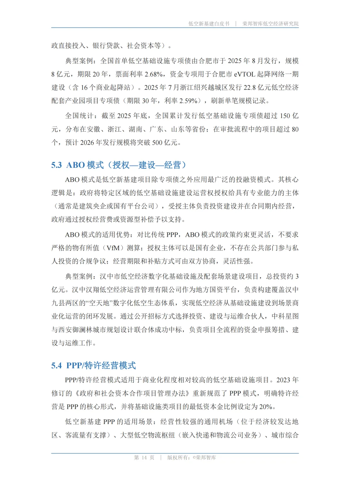 低空新基建最大的现实问题是资金来源。白皮书梳理了五种主要模式,最值得关注的是两个: