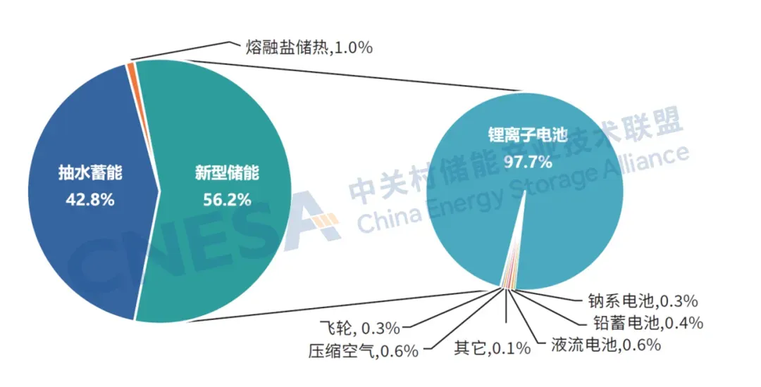 图3:中国电力储能市场累计装机规模(截至2025年底)单位:MW%