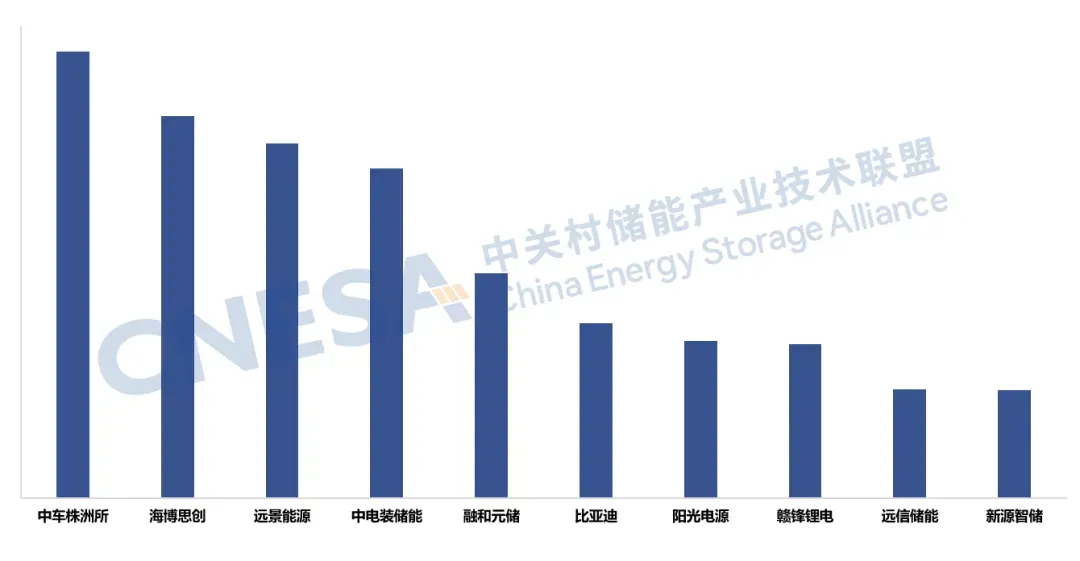 2025年度,国内市场中,储能系统出货量Top10的中国企业,依次为:中车株洲所、海博思创、远景能源、中电装储能、融和元储、比亚迪、阳光电源、赣锋锂电、远信储能和新源智储。