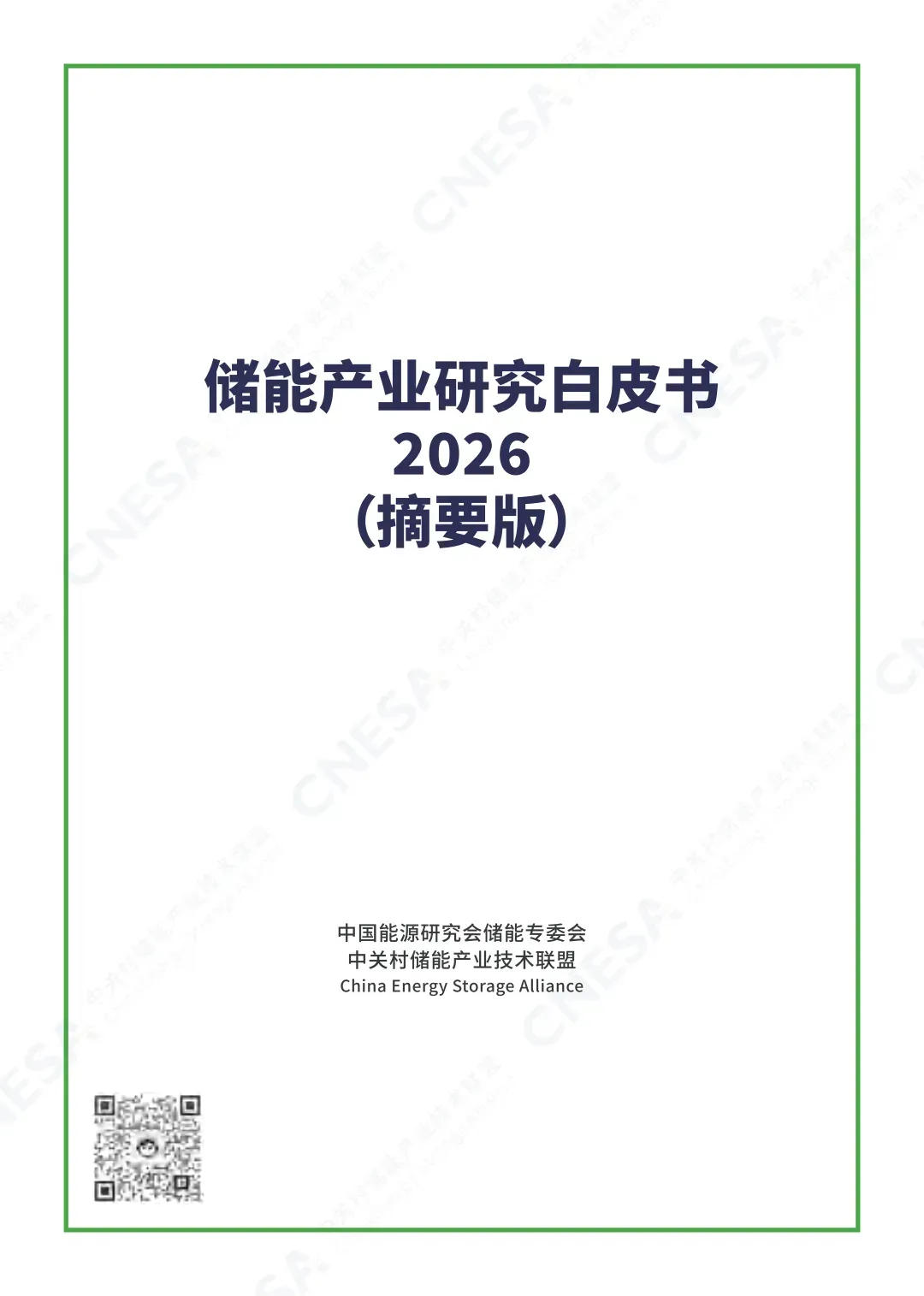 《储能产业研究白皮书2026》系统梳理并深入总结了全球主要国家和地区的市场规模、招中标市场及价格、企业出货与装机、典型企业订单与产品、政策与电力市场规则、储能安全与标准、投融资进展等多个维度,并结合当前产业格局与前沿技术趋势,对未来市场机遇与发展规模作出了前瞻性研判。