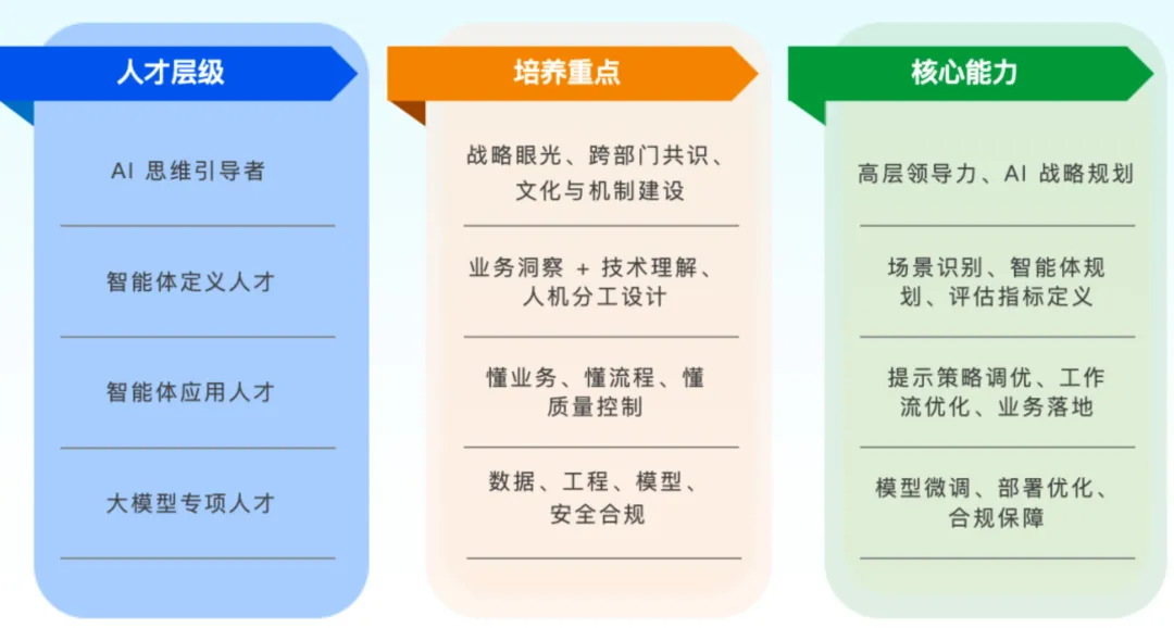 AI应用人才层:面向理财经理、客户经理等广大业务岗位,聚焦AI工具的场景化应用,提升业务效能。