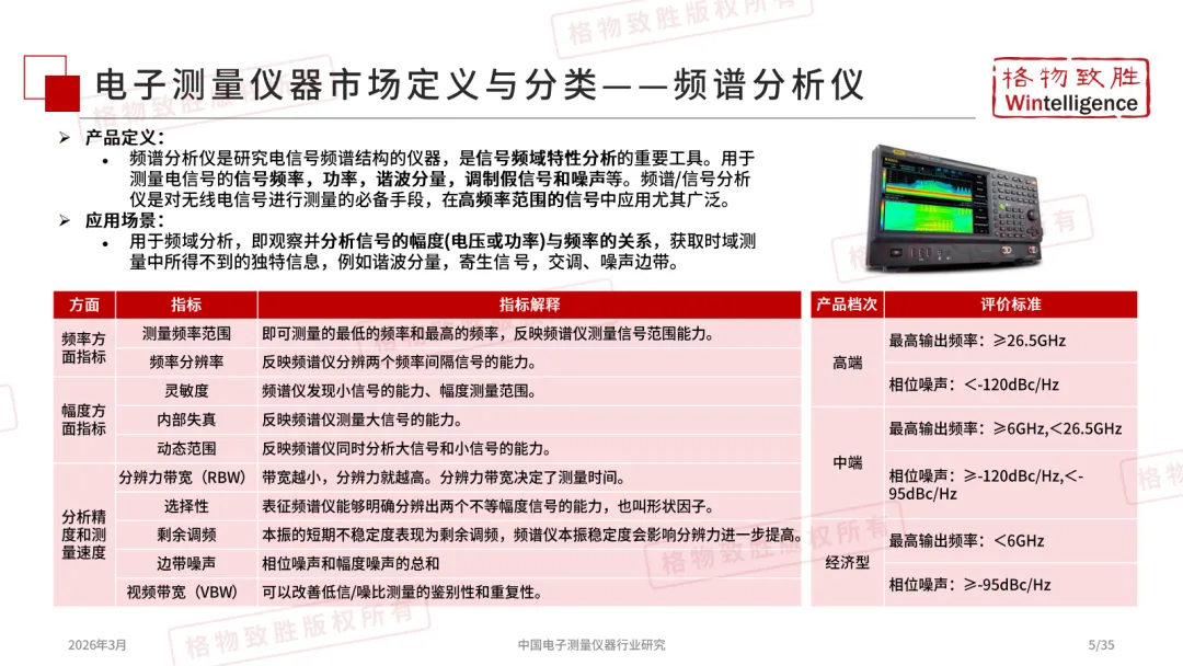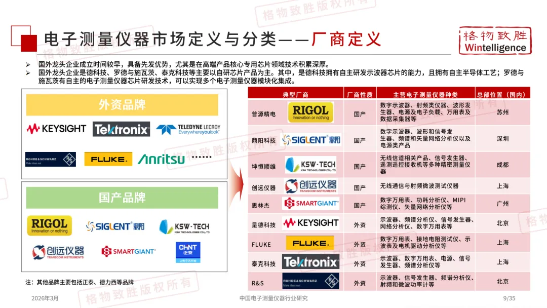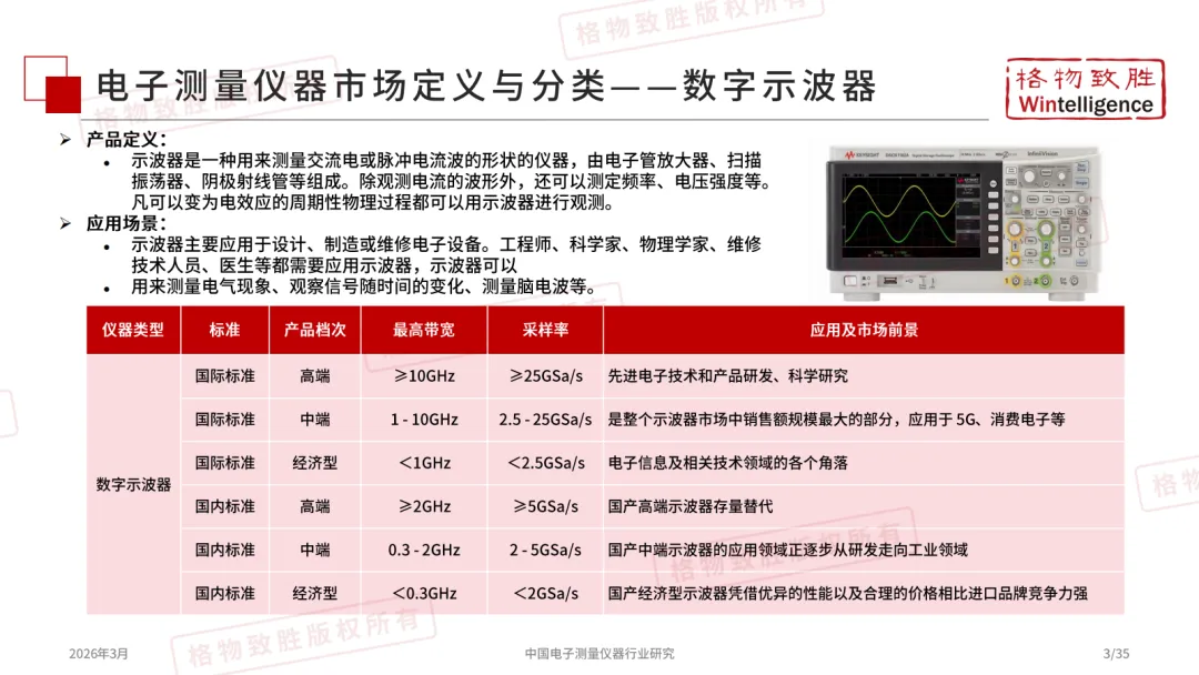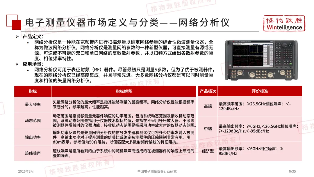 电子测量仪器作为多领域技术升级的精度标尺,贯穿产业全链条:在通信领域支撑5G/6G信号测试,在消费电子与半导体领域保障器件与终端精度,在工业、航空国防、新能源汽车及电力能源中实现精密计量与性能验证等,同时也是教育科研的基础实验工具。作为从研发到生产的核心技术底座,其水平直接决定高端制造的精度与效率。
