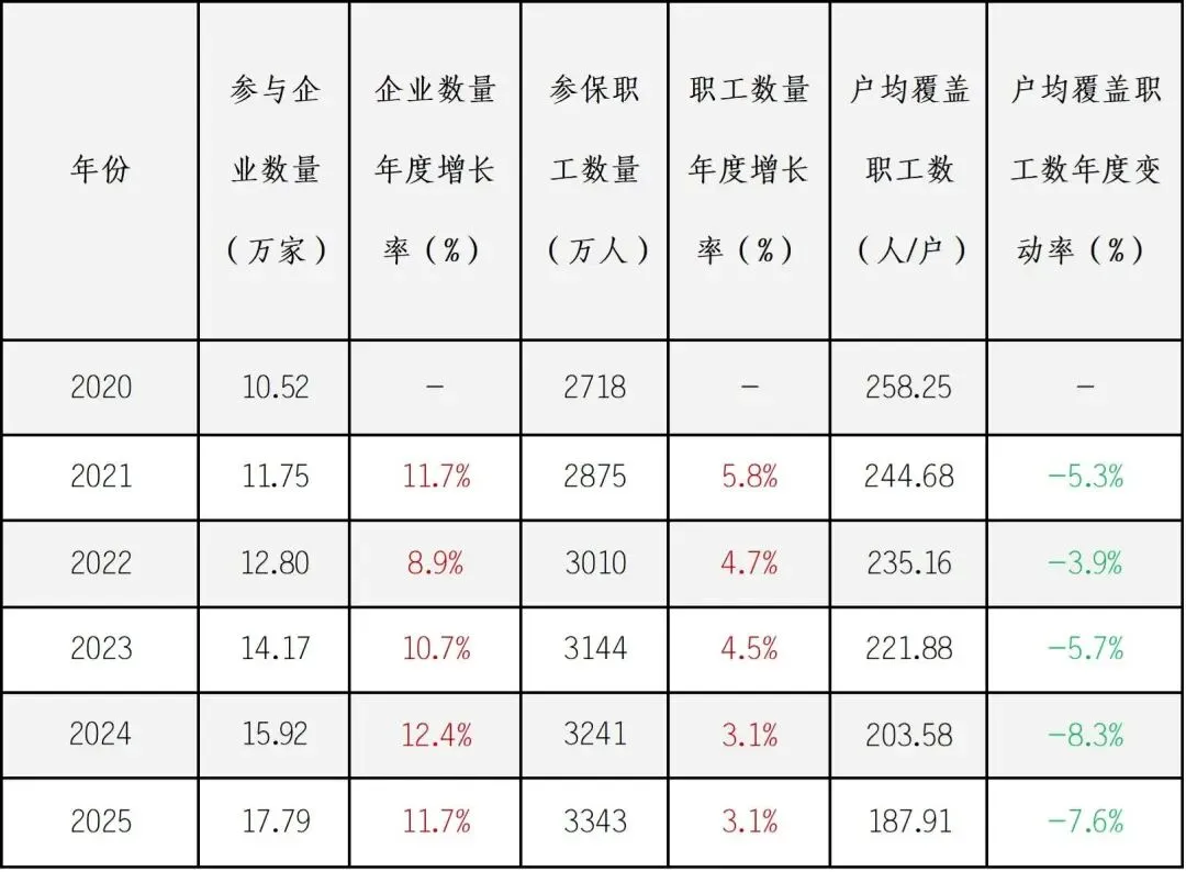 表1:2021-2025年企业年金参与主体年度规模与增长情况