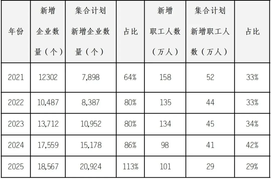 表2:2021-2025集合计划在净增企业数量及净增职工人数中的占比