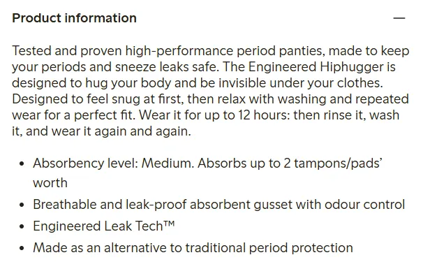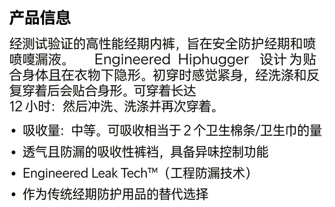 从功能上看,它所实现的功能与中国市场广泛使用的“安睡裤”有一定重叠:高吸收、防漏,可以像卫生巾及棉条一样吸收的经血。