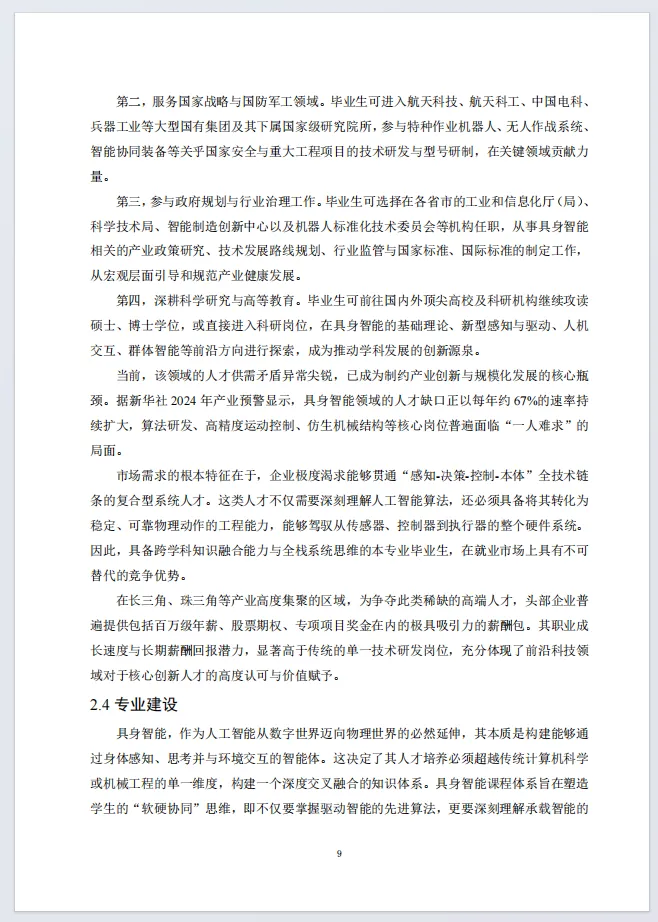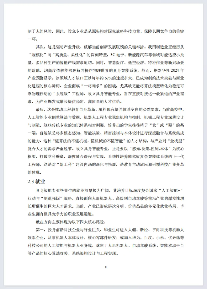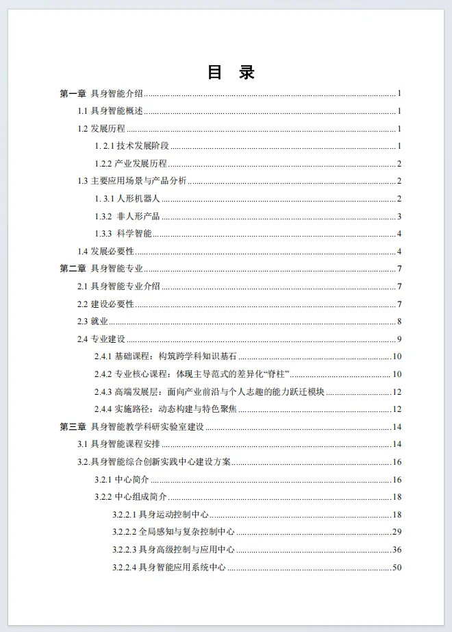 白皮书明确具身智能专业为交叉学科,构建基础、核心、高端三层课程体系,按自动化、机械、AI三大方向培养复合型人才,该领域人才缺口年增67%,就业前景广阔。同时,白皮书提出建设具身智能综合创新实践中心,规划四大功能中心,配置关节模组、人形机器人、动捕系统等核心设备,覆盖运动控制、感知决策、场景应用全环节,为专业教学与科研提供全流程硬件支撑和实践方案。
