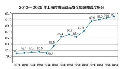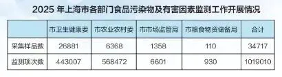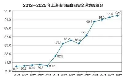 食品安全事关人民群众身体健康和生命安全,是最基本、最普惠的民生诉求之一,是人民群众获得感、幸福感、安全感的重要基础支撑。2025年,上海各区、有关部门按照“四个最严”要求,严防严管严控食品安全风险,持续推进食品安全治理体系和能力的现代化,全市食品安全状况保持总体有序可控、稳定向好的态势。过去一年,上海食品安全评价性抽检总体合格率为99.5%,比2024年提高0.1个百分点,继续保持较高水平;报告发生集体性食物中毒1起,中毒人数11人(无死亡),未发生重大食品安全事故,集体性食物中毒报告发生率为0.04例/10万人口,保持在2011年以来不高于1例/10万人口的较低水平。对于上海的食品安全状况,公众总体认可。去年,上海市民食品安全知识知晓度评分升至92.1分,市民食品安全满意度评分升至92分。3月31日,由上海市食品药品安全委员会办公室、上海市市场监督管理局编制的《2025年上海市食品安全状况报告》(白皮书)正式出炉,并授权《解放日报》独家首发。这已是上海连续15年向社会发布食品安全白皮书,持续将申城食品安全状况向社会公开。“80%”的挑战一座城市的食品安全状况由多种因素决定,其中,食品供给结构是关键项。不同的供给结构下,食品安全治理具有的优势、面临的挑战各不相同。“寸土寸金”的上海无法完全实现食用农产品的自给自足,在食用农产品消费量逐年增长的趋势下,食品供给对外依赖的程度持续加重。2025年,上海消费了2150万吨食用农产品,比2022年多出150万吨。近年来,上海每年消费的食用农产品中,有80%要靠外省市供应才能满足,该比例比2015年高出了10个百分点。大量“舶来品”也在支撑上海的“菜篮子”。2025年,上海口岸进口食品(含食用农产品)41.1万批、1378.5万吨。肉类(包括杂碎)、乳品、干鲜瓜果及坚果是2025年上海口岸进口金额最大的三类食品,分别为935.7亿元、417.4亿元、236.4亿元。它们中有一部分最终被放上了市民的餐桌。作为功能强大的国际航运中心,上海可以高效整合全球资源满足本地食品消费,但食品过于依赖外部供应且依赖程度持续加重,风险也水涨船高。因此,上海近年来加强本地食用农产品供应能力建设,增强抗风险能力。以蔬菜为例,“十四五”期间,上海地产蔬菜供应能力显著增强。截至2025年底,上海有蔬菜专业合作社及企业1398家,全年上市供应地产蔬菜267.05万吨,是2019年以来上市供应量最大的一年,反映了上海蔬菜专业合作社及企业的规模化发展,还有产业技术水平的提升,有力保障了上海蔬菜的稳定供应。上海地产水产品也出现了相似的“好苗头”。2025年,上海866个水产品养殖基地供应水产品10.3万吨,是2019年以来供应量最大的一年,这还是在水产品养殖基地比2019年减少了330个的基础上,说明了上海水产品养殖基地强大的生产能力。三大地产食用农产品中,生猪的情况不一样,上海域内生猪年出栏量2023年、2024年连续两年下降。2025年,这样的情况未有明显的改变,117家规模生猪养殖场的数量与2024年持平,产量略有增长,生猪出栏量达到59.09万头,比2024年增加了约0.55万头。积极的一面是,近年来,上海不断开发利用地方猪,加强品牌建设,为市民提供优质猪肉产品的同时,部分地产生猪产品还受到了全国市场的青睐。另一组数据也显现了上海地产食用农产品追求高质量发展的趋势:2025年,上海共有地产食用农产品有机产品获证企业124家,产品396个;绿色食品企业1152家,产品2486个,获证产量167.55万吨,绿色食品认证率33.2%,均较2024年有所增长。“流通”是主角尽管本地食用农产品供应能力逐年增强,但还不足以从根本上改变依靠“外援”的食品供给结构,需要强大的食品流通产业来支撑,这让上海成为一座典型的“食品流通城”。截至2025年底,上海共有各类食品生产经营主体424761户,同比增加8.1%。其中,61.8%的食品生产经营主体是食品销售经营主体,共有262651户,同比增加8.9%。该数量是1558户普通食品生产主体(包括普通食品和食品添加剂生产主体、食品加工小作坊,不包括特殊食品生产主体)的168.6倍,是485户食品相关产品生产主体的541.5倍,是156904户餐饮服务经营主体的1.67倍。食品销售经营主体的数量优势在2025年进一步巩固:262651户还创下了2019年至今食品销售经营主体数量的新高,比2019年增加了64.5%。进一步分析上海的食品销售经营主体,截至2025年底,上海有125427户持有效食品经营许可证、主体业态为食品销售的经营主体,有137224户仅销售预包装食品备案管理的经营主体,此外,有68家食品销售连锁企业总部,相关食品销售连锁门店达到12623个。仅销售预包装食品备案管理的经营主体成为上海最多的食品销售经营主体,与行政审批制度改革“放活”密切相关。根据《市场监管总局关于仅销售预包装食品备案有关事项的公告》,2022年1月起,上海市场主体从事仅销售预包装食品活动,可办理仅销售预包装食品备案,无需取得食品经营许可证。食用农产品批发交易市场的动向也值得注意。2024年起,上海本地主要食用农产品批发交易市场的数量结束了大幅减少的趋势,进入稳定期。2025年,上海15家主要食用农产品批发市场一年批发交易1071万吨各类食用农产品,比2024年增加约2.1%。以批发交易食用农产品全部用于本地消费计,2025年上海批发交易食用农产品对全市食用农产品总消费量的贡献率从2022年的三成提升至近