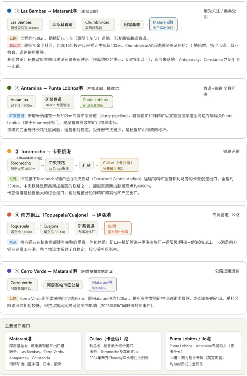运输物流瓶颈 | 南部公路走廊(Las Bambas等)封锁风险长期存在;铁路运力有限 | 中,影响交货稳定性 |