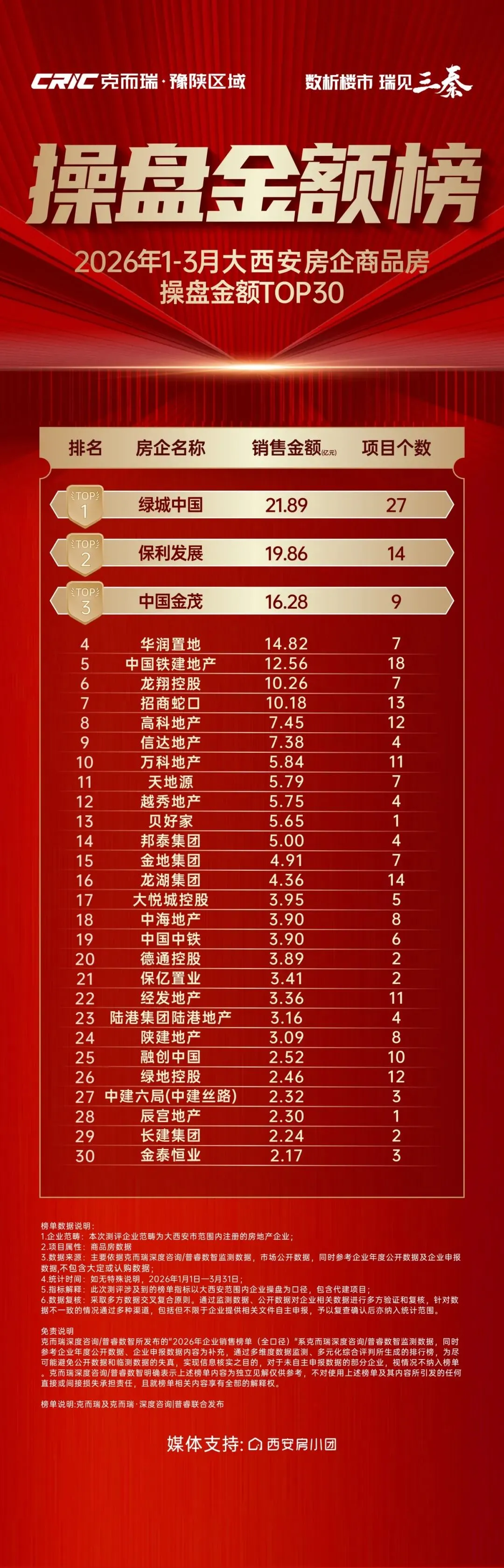 龙翔控股依托未央和鸣、奥城云邸等主力项目在城北、港务区两大热点板块持续去化,业绩表现稳健。1-3月整体业绩在民企中排名第二。