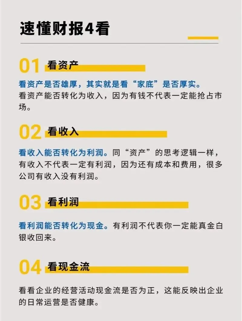1,赚钱:公司的赚钱能力主要看利润表和资产负债表。衡量股东权益的增值潜力时,主要看利润表;必须配合资产负债表一起来看。