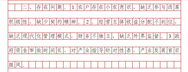 这一部分最大的问题在于表述太过口语化,而且存在表述不精准。表述不精准主要是“产业提升困难”这句,其实材料说的是产业发展盲目跟风的问题。我会这么写,其实是根本没想到“盲目跟风”这个描述,看到材料中说“做一些简单的农产品粗加工”,为了凑结构,直接乱写的。还漏掉了收益分配这个问题,我当时直接把这点当作引出公司经营不善的原因了,反而把这点给忘了。这一点我觉得参考答案写得很全面了,想不到还有什么需要精进的。