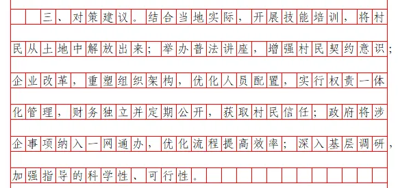 写得特别好的不说了(比如“放管服”改革,基层调研与产业指导责任制,涉企审批事项一网通办等等),咱就说我觉得这个参考答案需要改的地方: 其二:第4点可以去掉,略有过度推测的意味。本来这个调研报告的目的就是为了了解落实情况,为后期推广做准备,再加这么一点,略微显得画蛇添足。第二:前面几大模块都没有加小标题,这一部分加了。当了加了也是好的,但总感觉要么都加,要么都不加,而且有字数限制,字数不够的话就算了。第三:参考答案,将”毁约情况与政策扶持挂钩”,我觉得这个对策不是很好,不想用。