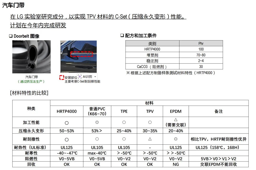 替代 EPDM、TPV,成本更低、耐候更强、可共挤