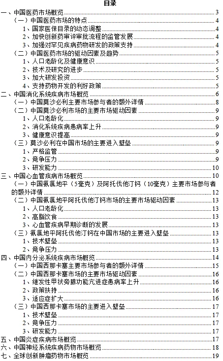 《中国医药市场(消化系统疾病、心血管疾病、内分泌系统疾病、炎症疾病、神经系统疾病、创新肿瘤药、眼科药物)行业深度分析报告(发展现状、驱动因素、未来趋势、竞争格局)》原文WORD版:请回复“报告231”免费下载。