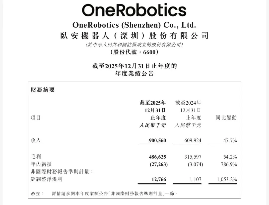 去年底于港交所上市的卧安机器人交出了上市后的首份年报,2025年收入9亿元,同比增长47.7%。卧安机器人聚焦智慧家庭场景,公司接近九成营收来自AI具身家庭机器人系统产品,2025年该等产品收入8.07亿元,同比增长约47.6%。