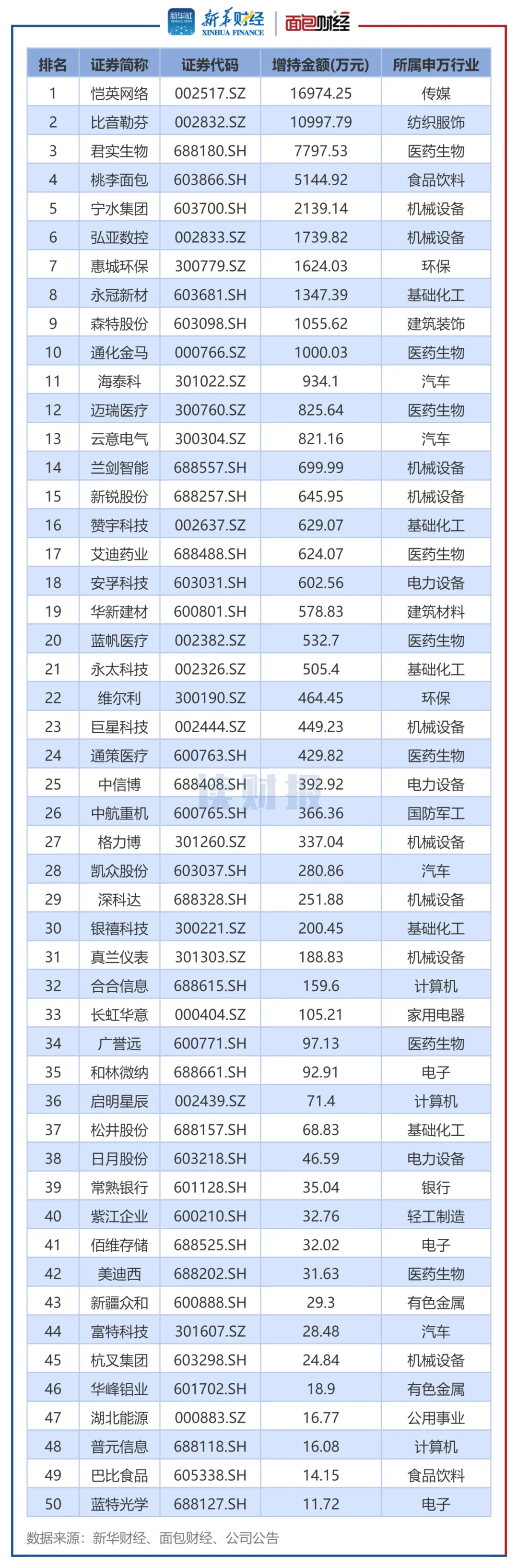 个股来看,恺英网络、比音勒芬、君实生物的增持金额排名前三。