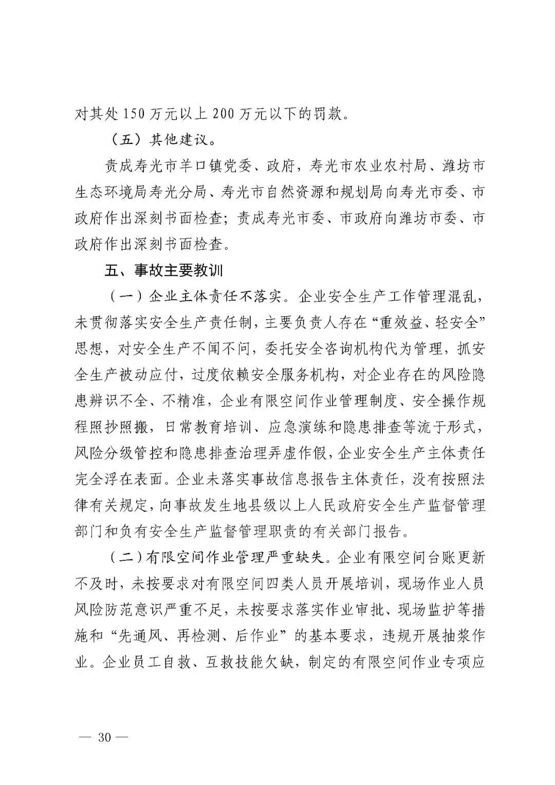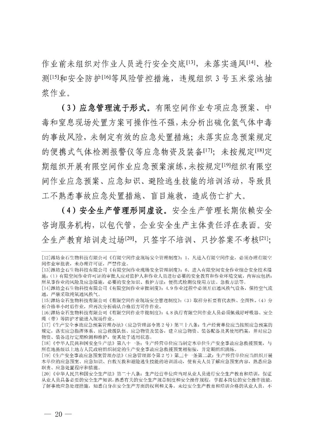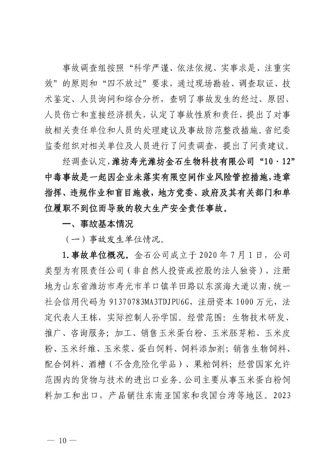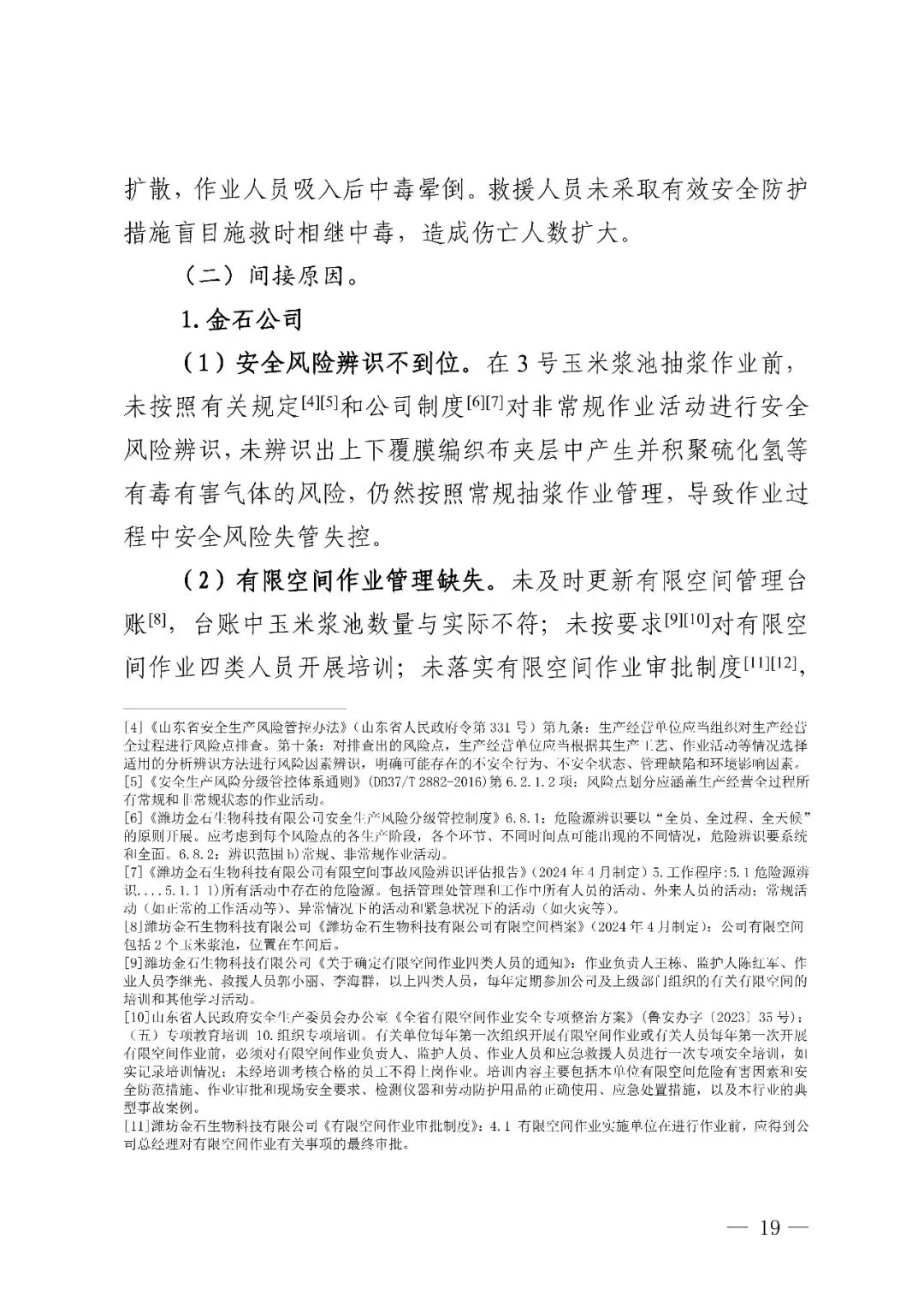 潍坊寿光潍坊金石生物科技有限公司“10·12”中毒事故是一起因企业未落实有限空间作业风险管控措施,违章指挥、违规作业和盲目施救,地方党委、政府及其有关部门和单位履职不到位而导致的较大生产安全责任事故。
