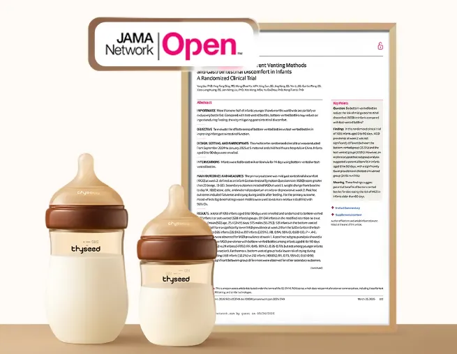 近日,世喜与北京大学医学部联合实验室的临床研究《不同回气方式奶瓶防胀气效果评价项目研究报告》正式发表于SCI期刊《JAMA Network Open》。该研究联合5家妇幼保健医院,对1041名新生儿进行观察。数据显示,采用底部回气设计的奶瓶,能减少0-90天宝宝21%的喂养哭闹风险,并降低60天以上宝宝55%的轻度胃肠不适。该成果标志着世喜奶瓶防胀气效果获国际医学评审认可。(世喜公众号)