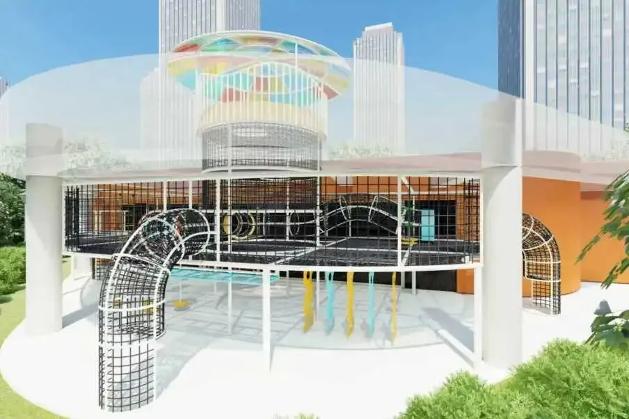 近日,江苏玉河教玩具有限公司为南京六合名园打造的绳网游乐新品正式落地,该产品将游乐设施无缝嵌入教学楼建筑中,采用双层立体结构,下层为感统娱乐区,上层为绳编探索平台,并通过垂直攀爬网连接楼层,实现了“学习”与“玩乐”场景的零距离切换。这一定制化方案不仅解决了园所场地受限的难题,还通过全龄段适配的体能训练设施,为孩子们打造了一个集运动、探索与成长于一体的立体化教育游乐空间。(江苏玉河教玩具有限公司公众号)