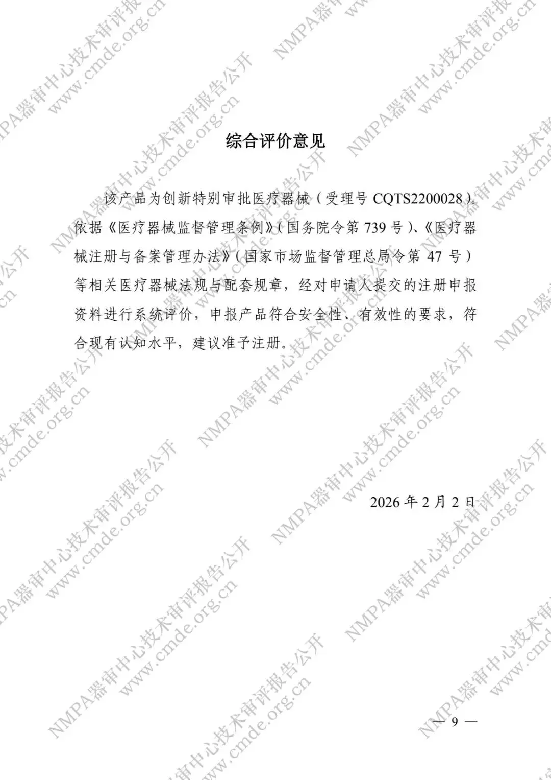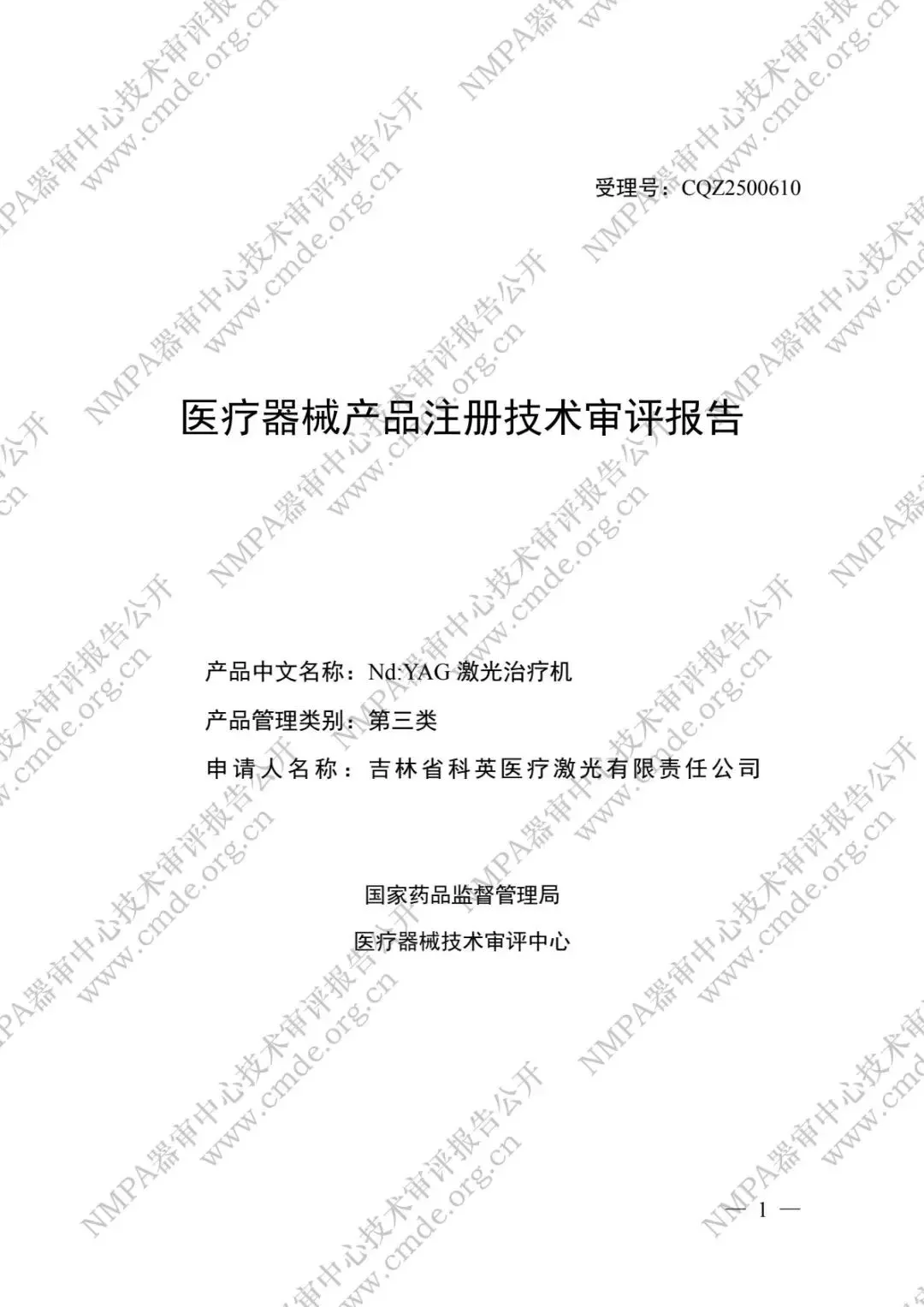 行业报告分享|CMDE公布科英医疗“Nd:YAG激光治疗机”(CQZ2500610)审评报告