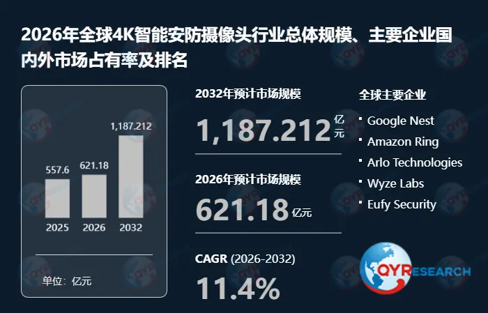 若您希望进一步了解该行业全面深度分析,可参考QYResearch最新发布的《2026年全球4K智能安防摄像头行业总体规模、主要企业国内外市场占有率及排名》研究报告。