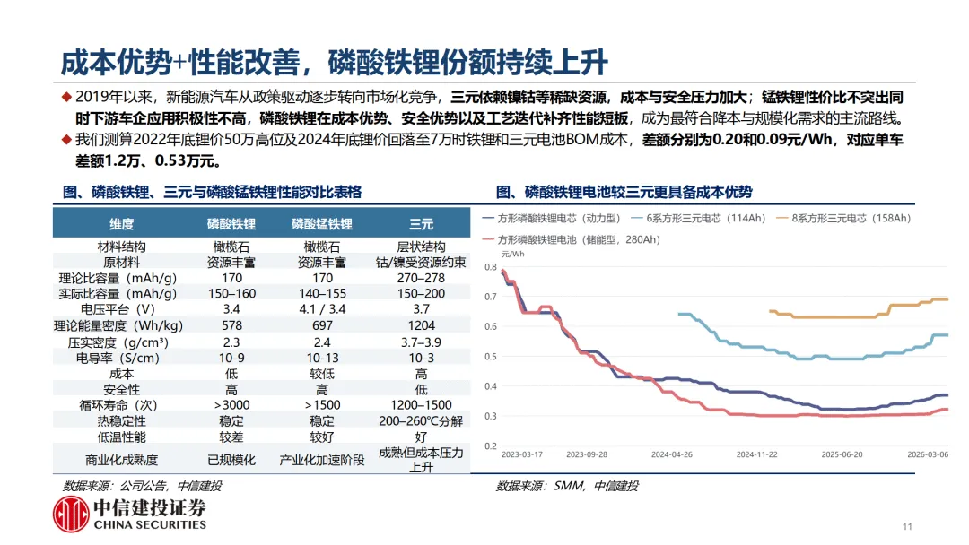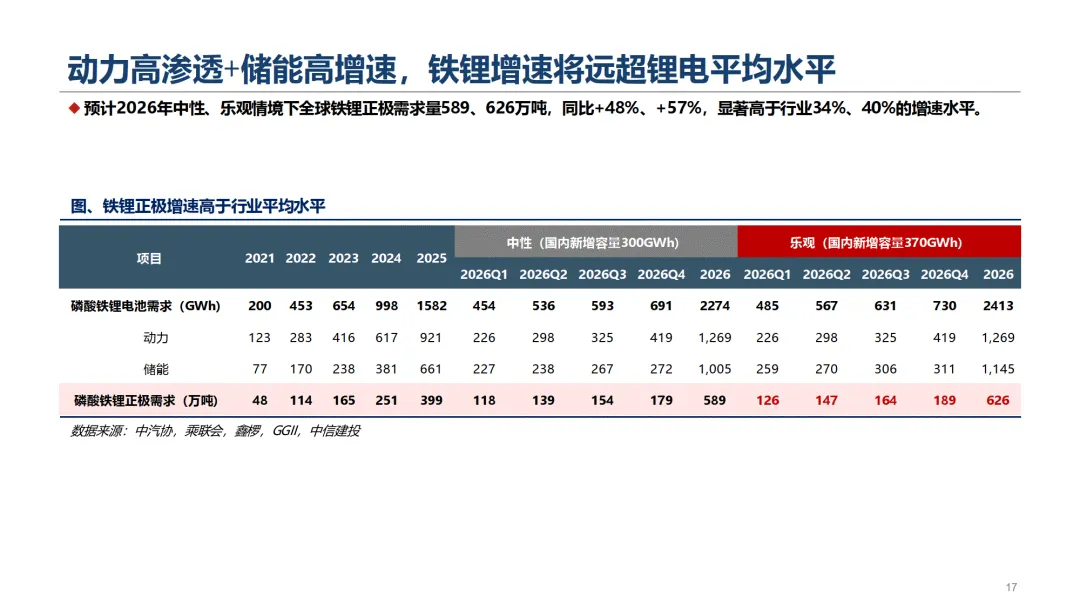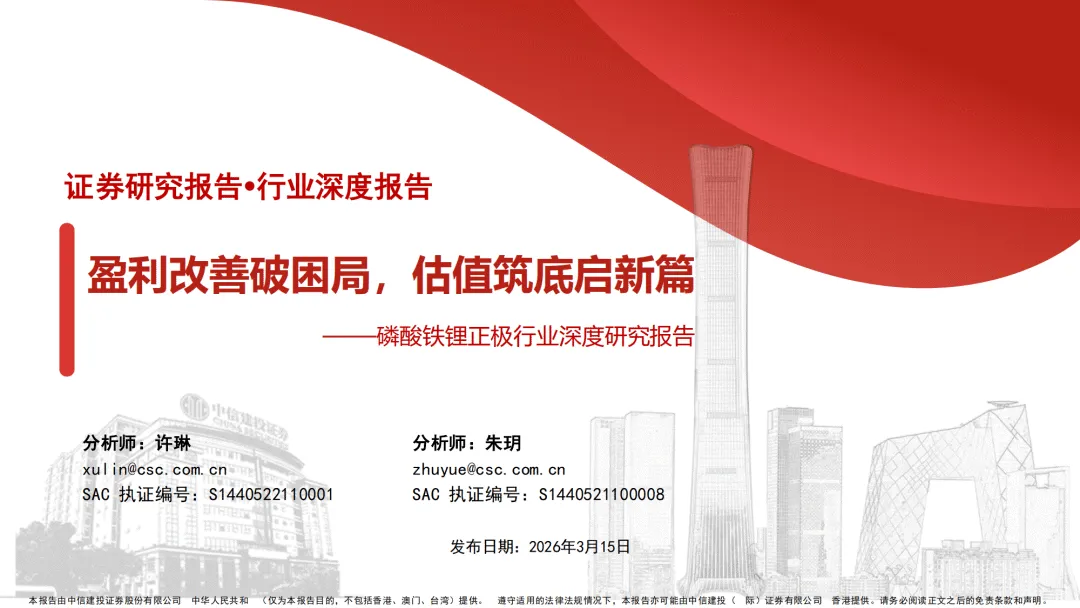 报告由中信建投证券于 2026 年 3 月发布,核心判断为磷酸铁锂正极需求高增、盈利触底回升、估值具备修复空间,是锂电中游最具超额增速的环节。————